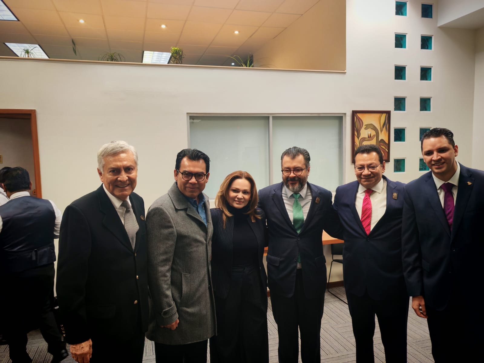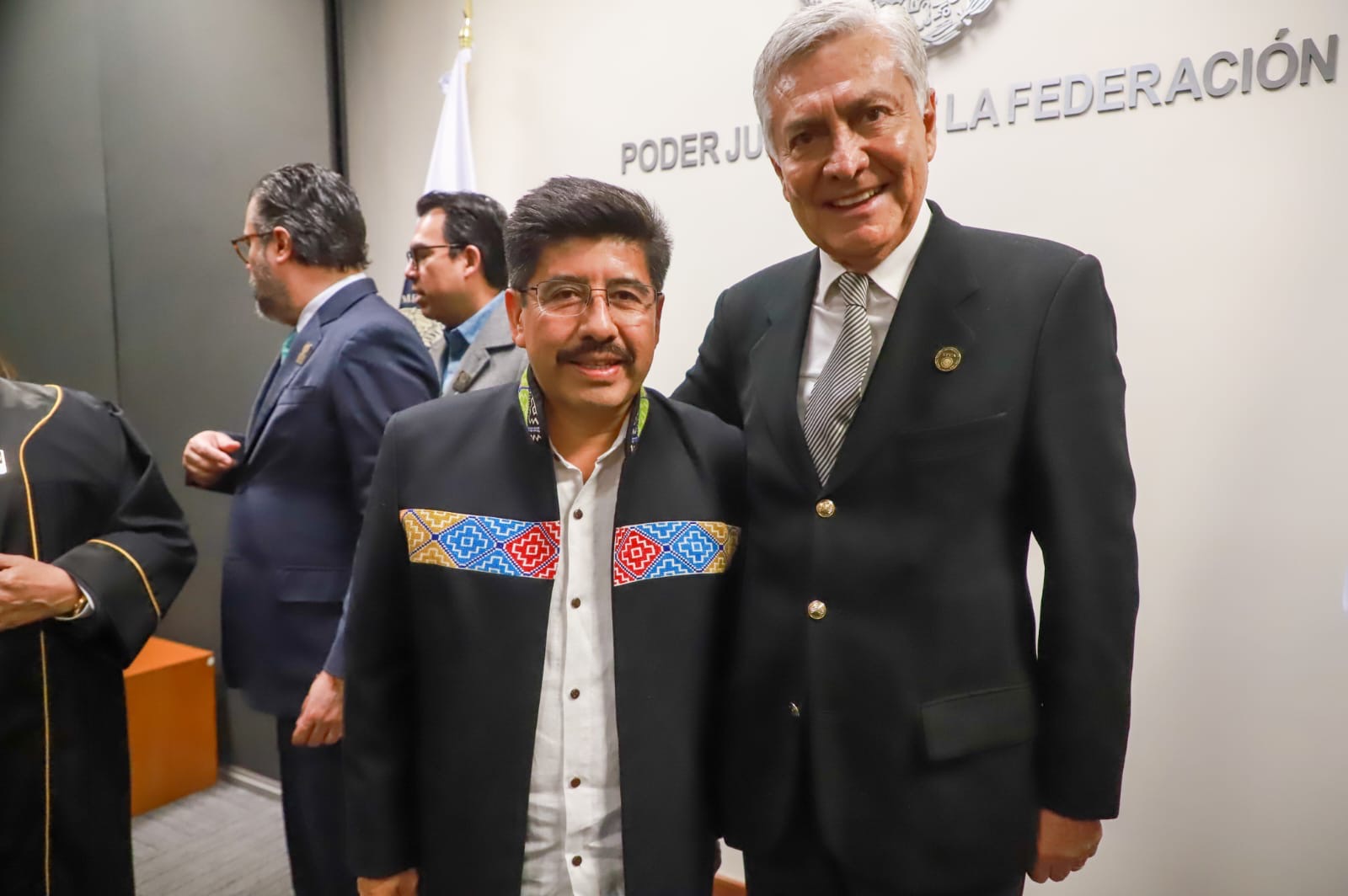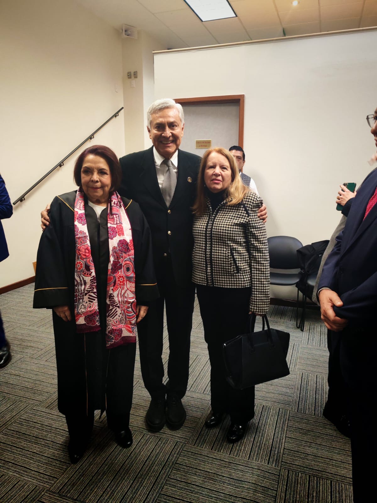Arias Solís felicitó a la Magistrada Celia Maya, Presidenta del TDJ, y saludó e intercambió puntos de vista con el Presidente de la Suprema Corte de Justicia de la Nación, Hugo Aguilar Ortiz; las Ministras Yazmín Esquivel Moza, Loretta Ortiz y Lenia Batres; los Magistrados del TDJ Bernardo Bátiz y Rufino De León Tovar; el Subsecretario de Gobernación César Yáñez y el titular del Instituto Mexicano de la Propiedad Industrial Santiago Nieto.