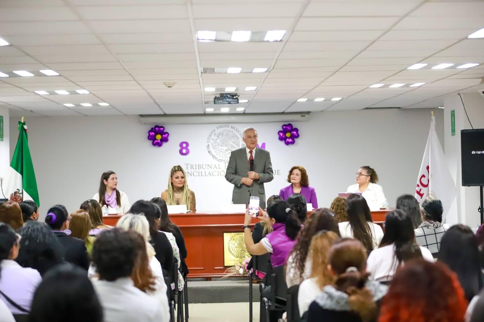 Ante un numeroso grupo de mujeres que laboran en este Tribunal, afiliadas al STTFCA que encabeza el Maestro Federico Chávez, la “Barby” dijo que México es un país en el que las mujeres tienen derechos y que el trabajo en equipo es el que las hace fuertes.