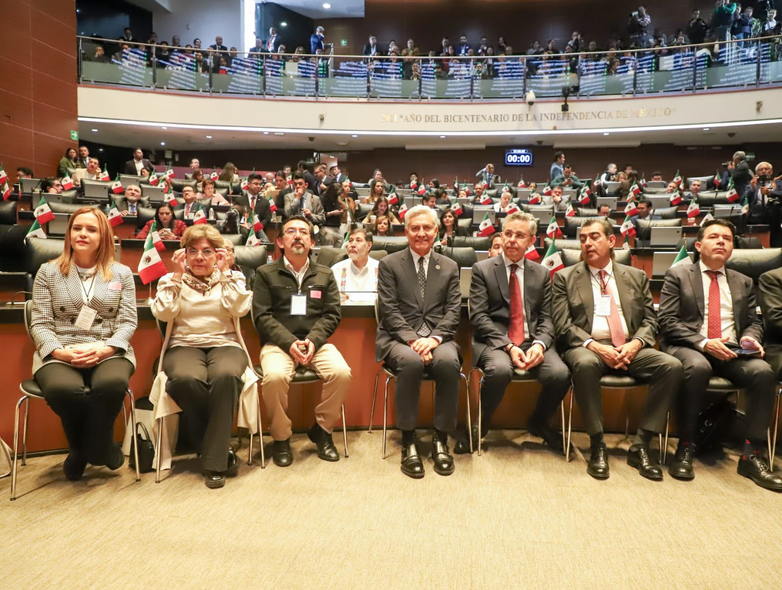 El Magistrado Presidente del Tribunal Federal de Conciliación y Arbitraje, Cristóbal Arias Solís, acompañó a la titular de Gobernación en este acto republicano de rendición de cuentas.